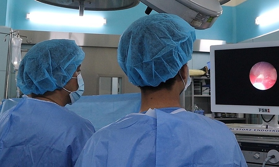 “Trong phẫu thuật sỏi thận qua da, bác sĩ tạo một đường dẫn ở vùng hông. Da”, PGS.TS. Phân tích cho thấy kênh khoảng một cm nên vết rạch da rất nhỏ, bác sĩ sẽ đưa dụng cụ vào kênh để phá vỡ các mảnh vụn và loại bỏ các mảnh nhỏ. Một vết rạch dài khoảng 15 cm được thực hiện ở hông, vết mổ làm hở cơ hông, tổn thương dây thần kinh, xương sườn thứ 12 và các mô xung quanh thận. Trong quá trình cắt đốt, toàn bộ người của đài bể thận hoặc mô thận được lấy sỏi ra ngoài, Nhiếp ảnh: Trần Nhung.