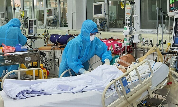 Bác sĩ Phạm Văn Phúc thuộc Khoa Hồi sức tích cực, Bệnh viện Nhiệt đới Trung ương cho biết, đầu đợt dịch, khoa đã tiếp nhận 5 bệnh nhân mắc bệnh Covid-19 nặng phải thở máy. Bệnh nhân bước vào trạng thái suy hô hấp phải được thở máy và bổ sung lượng lớn oxy. Các bác sĩ khoa cấp cứu điều trị hồi sức, kết hợp dùng thuốc kháng vi rút.