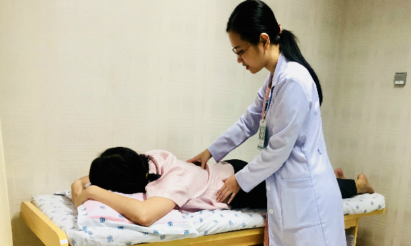 Bác sĩ khám cho bệnh nhân bị đau lưng tại Bệnh viện Đại học Y Dược TP HCM. Ảnh: NP