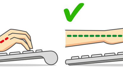Giữ thẳng cổ tay khi làm việc: điều chỉnh ghế và để cánh tay song song với bàn phím. Hãy cẩn thận không uốn cong hoặc uốn cong cổ tay của bạn. Cố gắng giữ thẳng cánh tay và giữ cổ tay ở vị trí thoải mái. Tư thế cổ tay tốt có ảnh hưởng tích cực đến hội chứng ống cổ tay.
