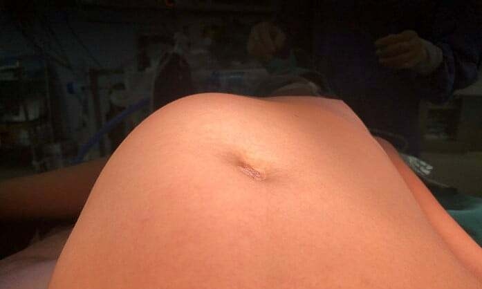 Khối u lớn đã làm thay đổi cấu trúc ổ bụng của bệnh nhân. Ảnh: Do bác sĩ cung cấp.