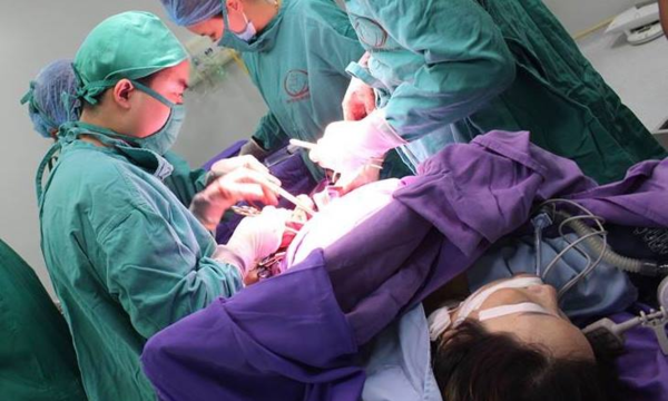 Vào ngày 2 tháng 4, các bác sĩ đã cắt bỏ khối u xơ tử cung nặng 2,5 kg cho bệnh nhân 52 tuổi. Ảnh: Bệnh viện Phụ sản Hải Phòng.