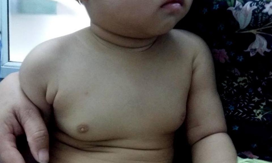 Theo bác sĩ Phúc, em bé này bị phì đại tuyến vú (nữ hóa tuyến vú). Vú phát triển sớm ở trẻ nhỏ là một bệnh lý hiếm gặp, một số bệnh cho thấy trẻ dậy thì sớm. Trẻ em dưới 2 tuổi bị ảnh hưởng bởi estrogen (hormone sinh dục nữ), được truyền từ mẹ sang con qua đường máu hoặc sữa. Nếu mức độ estrogen cao, các tuyến vú của em bé sẽ phát triển giống như một thiếu niên. Sau khi cho con bú, trong hầu hết các trường hợp, kích thước của vú giảm dần và sau đó trở lại bình thường.