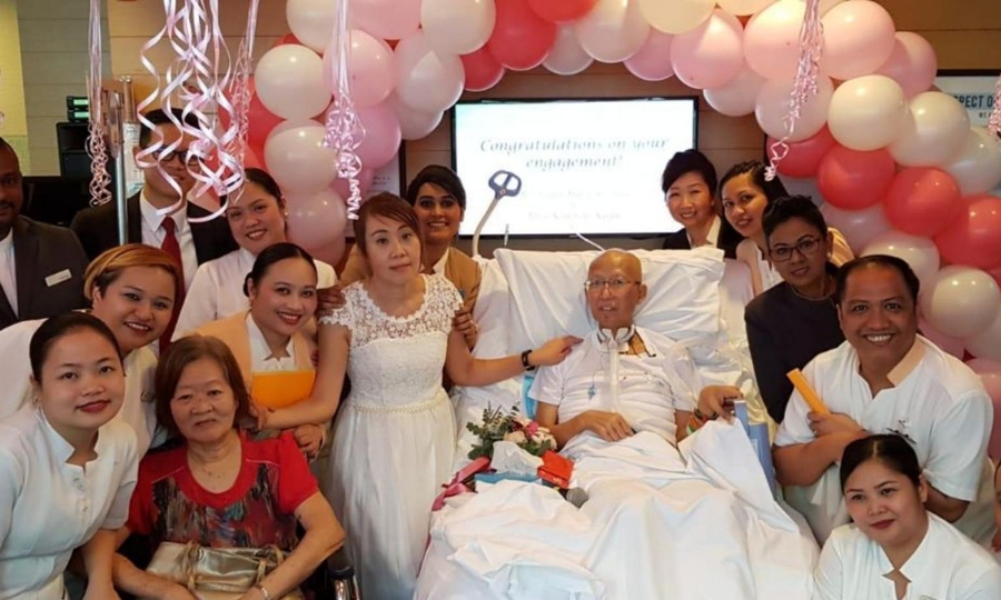 Hai năm trước, ông Pang thấy mình bị ung thư phổi tiến triển. Khi được điều trị tại Bệnh viện Mount Elizabeth ở Singapore, anh đã chia sẻ mong muốn được cưới cô Koh với các y tá. Theo báo cáo “Thời báo Straits”, với những nỗ lực chung của ban quản lý, họ đã cùng thực hiện mong muốn của ông Pang.