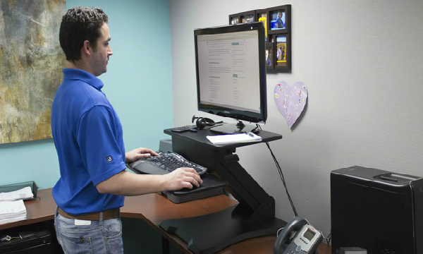 Người dùng có thể sử dụng điều khiển bảng hai lớp để điều chỉnh chiều cao khi thay đổi vị trí làm việc đứng. Công việc giúp kiểm soát và hạ đường huyết. Tư thế này làm giảm các bệnh tim mạch do tăng lưu thông máu và tránh nhiều nguy cơ tử vong. Do đó, để làm việc và duy trì sức khỏe, nhân viên văn phòng có thể thay đổi vị trí làm việc .– – Tuy nhiên, đứng trong giờ làm việc cũng có thể gây ra sự tích tụ máu ở chân và nguy cơ giãn tĩnh mạch. Do đó, bạn cần kết hợp tư thế đứng và ngồi. Công nhân có thể ngồi trong 20 phút sau khi đứng một đến hai giờ để giảm đau khớp Ngoài ra, bạn cũng cần thực hiện các bài tập kéo dài để thúc đẩy lưu thông máu và tránh các bệnh văn phòng như đau cơ và đau cột sống.
