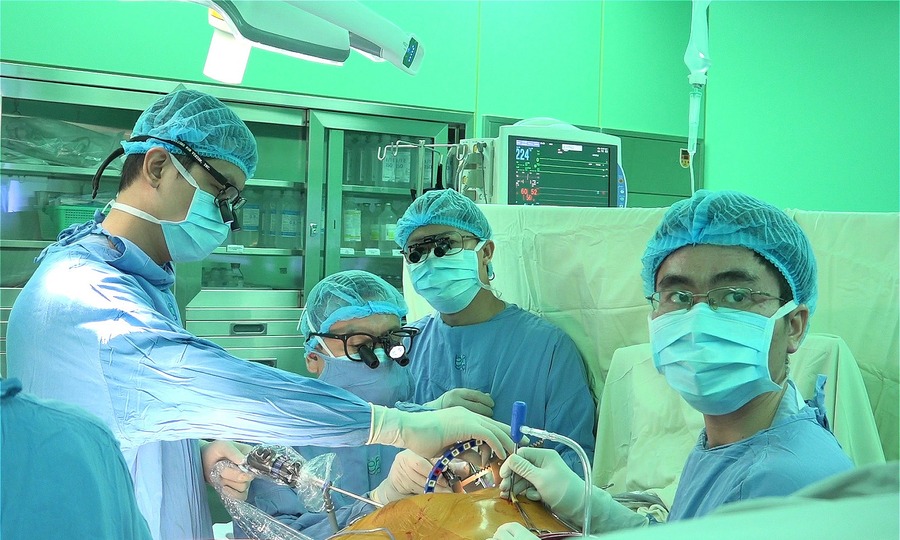 Nội soi tim đặc biệt hiệu quả trong trường hợp mở lại. Ví dụ. Bệnh nhân đã được thay thế bằng van giả. Sau 10 đến 15 năm bị suy van tim, cần phải phẫu thuật thay van tiếp theo. Tạo vết mổ tương tự trong các vết mổ tiếp theo là khó khăn và nguy hiểm vì các mô bên dưới sẽ dính sau ca phẫu thuật đầu tiên. Trong phẫu thuật nội soi, bác sĩ không chỉ rạch dọc xương ức mà còn có một cách tiếp cận khác với tim. Sternum, vết sẹo tiểu phẫu, ngoại hình đẹp, giảm mất máu, giảm thời gian thở máy sau phẫu thuật, quá trình hồi phục ổn định, thời gian phục hồi nhanh chóng “, bác sĩ Đinh nói. Trong phẫu thuật tim mạch, phẫu thuật nội soi chiếm 80% tổng số ca phẫu thuật tim ở các nước phát triển Phương pháp này có thể được sử dụng để điều trị nhiều bệnh tim mạch, chẳng hạn như sửa chữa hoặc thay thế van hai lá và van động mạch chủ, hẹp động mạch vành, phẫu thuật tim bẩm sinh, giao tiếp giữa tâm nhĩ và tâm thất; Phẫu thuật nội soi tại Đại học Y khoa Thành phố Hồ Chí Minh Ảnh: NP