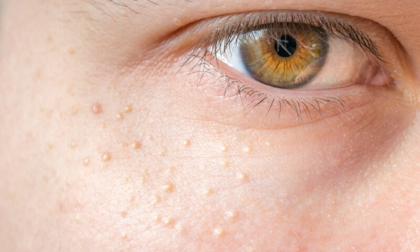 “Thương tổn da là những sẩn nhỏ có đường kính từ 1 đến 3 mm, màu trắng hoặc vàng. Vinh nói:” Nó phổ biến nhất trên túi mắt, trán và các khu vực ít phổ biến khác, như mặt, cổ, cổ và túi ngực. .