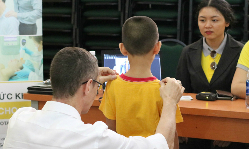 Ở trẻ em, việc phòng ngừa và phát hiện sớm vẹo cột sống là quan trọng hơn, vì bệnh có thể phát triển nhanh, nhưng cũng dễ khắc phục hơn vì hệ thống xương của trẻ rất linh hoạt vào thời điểm này. Nhiều khảo sát đã chỉ ra rằng những đứa trẻ bắt đầu điều trị trước khi đường cong đạt 20 độ có thể giảm xuống dưới 10 độ. Kiểm tra sớm để phát hiện vẹo cột sống ở trẻ em. Ảnh: MH