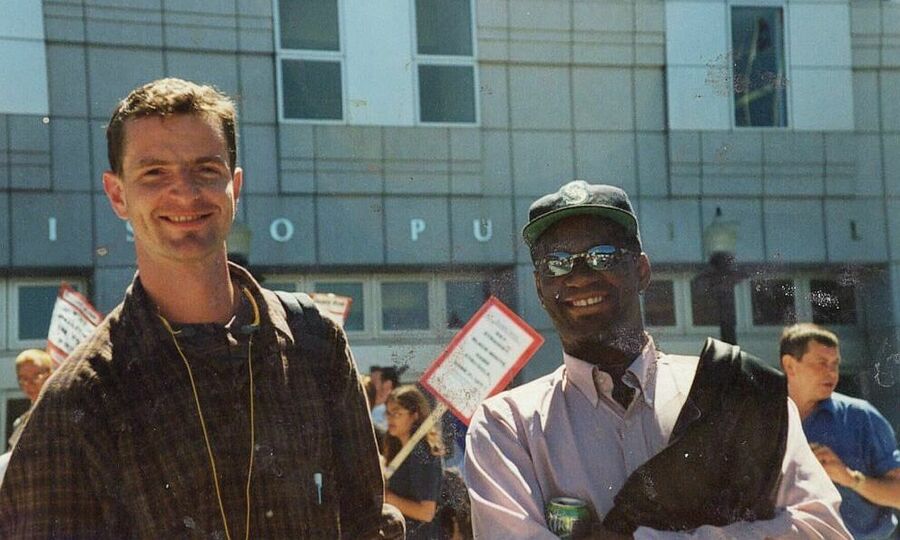 Guy Van den Berg (trái) và chồng là lịch sử Steve Williams, 1995. Ảnh: Gu Vandenberg-Vandenberg bắt đầu làm y tá và chăm sóc bệnh nhân AIDS trong các bệnh viện tế bần vào cuối những năm 1980 – nơi các y tá được đào tạo để chăm sóc các bệnh nhân thông cảm. ẩn giấu. Sau đó, ông chuyển sang loạt SFBH 5B vào đầu những năm 1990.