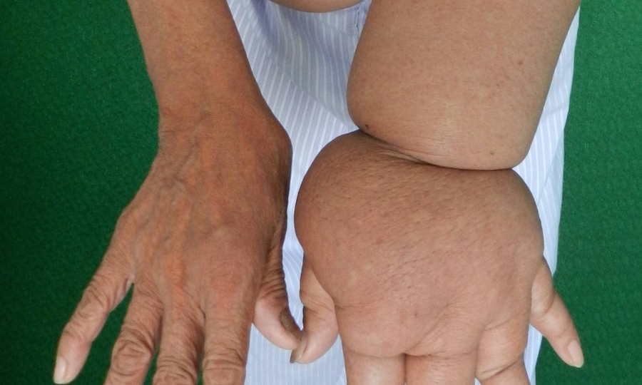 Bà Lan, 65 tuổi, ngụ tại quận Phú Nhuận, TP.HCM, phát hiện mắc bệnh ung thư vú trái năm 2002. Để ngăn chặn di căn, cô buộc phải cắt bỏ vú và nạo bỏ hạch nách bên trái. Sau một thời gian, tái khám không tìm thấy tế bào ung thư xâm lấn các cơ quan khác. Tuy nhiên, cánh tay trái ngày càng sưng tấy. Khi cô Lan đến bệnh viện Pingdan, kích thước của cánh tay trái của cô lớn gấp đôi bàn tay còn lại của cô.