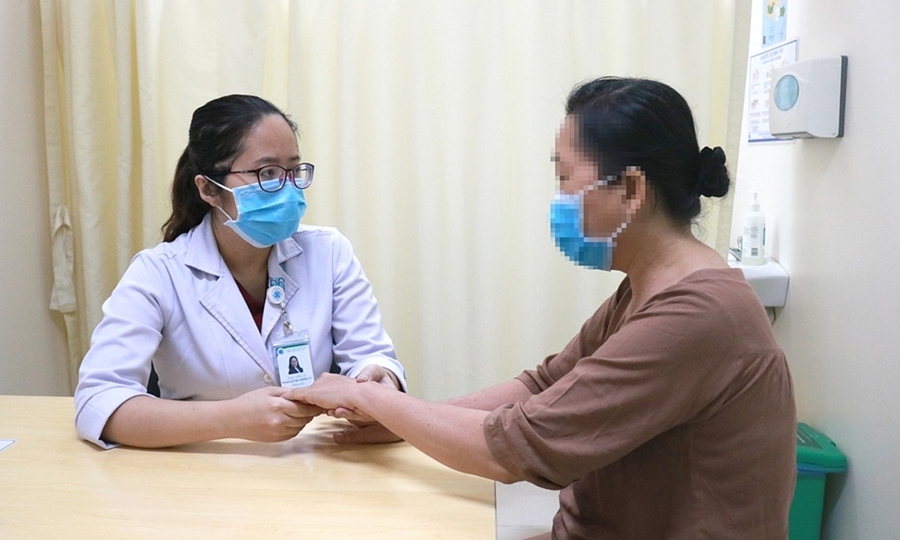 Vừa rồi em có đến bệnh viện Cao đẳng Y Dược TPHCM để khám thì tình trạng viêm da của em rất nặng. Các khớp bàn tay, ngón tay, khớp ngón tay, cổ tay, khớp gối, cổ chân rất đau. Bệnh vẩy nến khiến cô không thể đi lại một mình và phản ứng kém với thuốc. – Bác sĩ đã thay đổi cách điều trị của cô ấy sang thuốc sinh học. Sau khi tiêm 5 liều thuốc sinh học, các vết vảy nến trên da bệnh nhân đã biến mất hoàn toàn, các cơn đau khớp giảm 90%, có thể đi lại một mình và sinh hoạt bình thường-BS Vỹ kiểm tra cho bệnh nhân. Ảnh do bệnh viện cung cấp. – Bác sĩ Phạm Huỳnh Tường Vy, Khoa Cơ Xương Khớp, Bệnh viện Đại học Y dược cho biết, nếu không được chẩn đoán và điều trị kịp thời, bệnh có thể phát triển nặng dẫn đến biến dạng khớp, tàn phế. Nếu người bệnh mắc các bệnh cơ bản kèm theo như tăng huyết áp, đái tháo đường, thiếu máu cơ tim, béo phì, viêm ruột… Vảy nến thể khớp có thể gây biến chứng và tăng tỷ lệ tử vong.