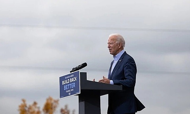 Cuộc biểu tình của đảng trong chiến dịch bầu cử. Ông Biden đang ở Toledo. Ảnh: NYT.