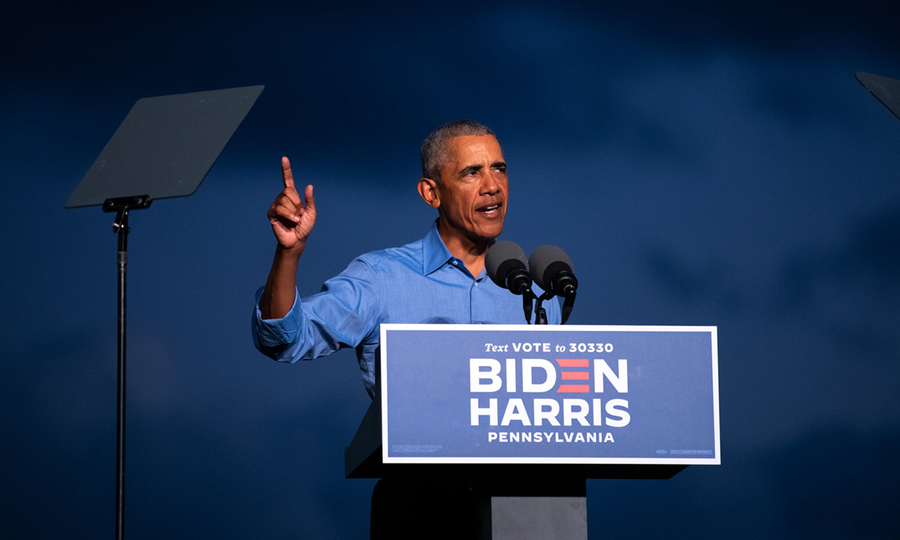 Cựu tổng thống được coi là đại diện chính của ứng cử viên Biden. Biden đã xuất hiện trong một video gây quỹ trong bài phát biểu vào thời điểm quan trọng của mình tại Hội nghị Quốc gia đảng Dân chủ vào tháng 8 và kêu gọi những người ủng hộ bỏ phiếu cho Biden. Vào đầu tháng 10, anh cũng tham gia một hội nghị gây quỹ trực tuyến với ứng cử viên Phó Tổng thống Kamala Harris và nam diễn viên Michael Jordan.