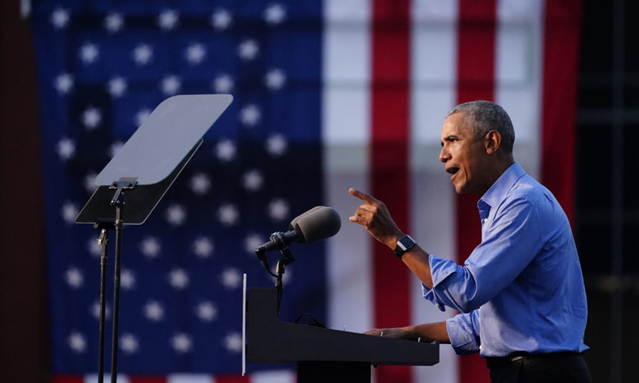Vào ngày 21 tháng 10, cựu Tổng thống Barack Obama trong chiến dịch tranh cử của Joe Biden ở Philadelphia, Pennsylvania. Ảnh: Associated Press.