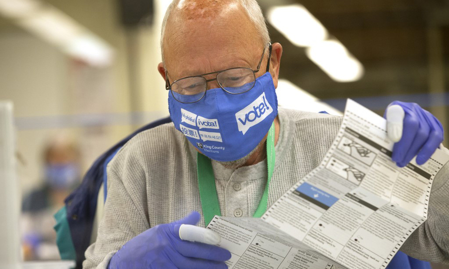 Sự suy giảm của Dịch vụ Bưu điện Hoa Kỳ và máy móc được coi là một yếu tố. Gây ùn tắc giao thông. Một số bang cũng sẽ kéo dài thời gian bỏ phiếu sau ngày bỏ phiếu, nhưng tùy thuộc vào dấu bưu điện không muộn hơn ngày 3 tháng 11 các quan chức bầu cử làm việc tại thành phố. Renton, Washington, Hoa Kỳ, ngày 3 tháng 11. Ảnh: Agence France-Presse.