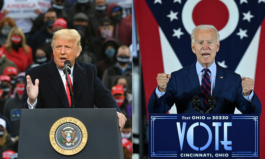Tổng thống Trump (trái) có bài phát biểu ở New Hampshire vào ngày 25 tháng 10 và ứng cử viên Đảng Dân chủ Biden có bài phát biểu ở Ohio vào ngày 12 tháng 10. Nhiếp ảnh: Agence France-Presse.