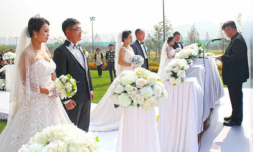 Hôn nhân tập thể của Hàn Quốc năm 2016. Ảnh: Nhật báo Bắc Triều Tiên .