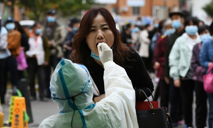 Một phụ nữ đã được kiểm tra nCoV ở Thanh Đảo, Trung Quốc vào ngày 13 tháng 10 năm 2020. Ảnh: Reuters.