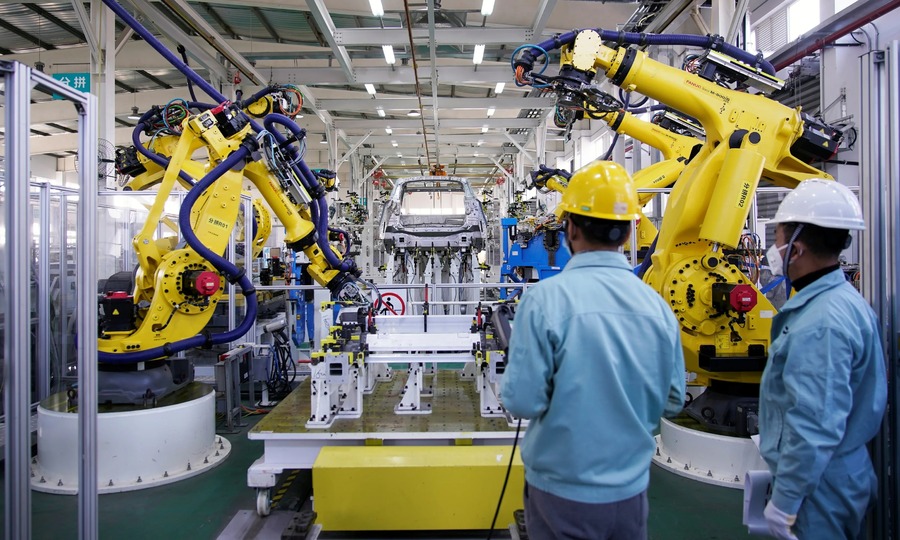 Công nhân tại nhà máy ô tô Aiwei ở Thượng Hải vào ngày 14 tháng 1. Ảnh: Reuters.