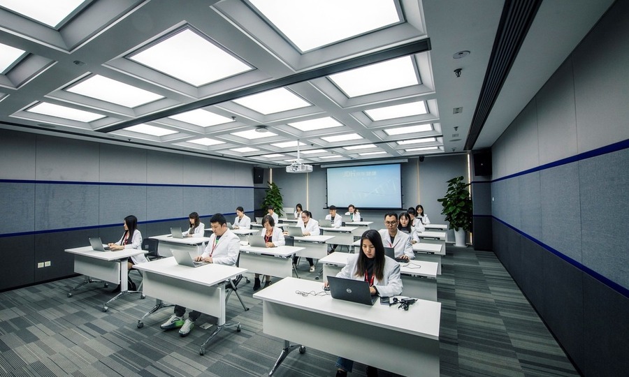 Các bác sĩ Trung Quốc trợ giúp bệnh nhân thông qua dịch vụ y tế từ xa AI-App của JD Health. Ảnh: AP.