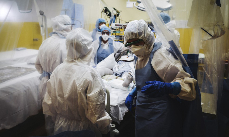 Nhân viên y tế đã điều trị cho bệnh nhân Covid-19 trong phòng chăm sóc đặc biệt của Bệnh viện Franco (Anh) ở miền bắc Paris, Pháp vào tháng Tư. 9. Ảnh: AFP.