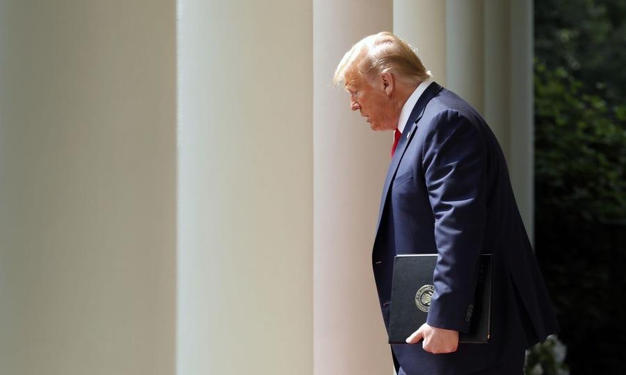 Tổng thống Hoa Kỳ Donald Trump đang ở trong khuôn viên Nhà Trắng. Ảnh: Bloomberg – Đồng thời, thông điệp chiến dịch của ông Biden truyền tải rằng việc ông Trump không thực hiện các biện pháp y tế công cộng tích cực, như các nỗ lực của Đức và Hàn Quốc, sẽ dẫn đến sự lây lan của virus và khủng hoảng kinh tế. Đảng này từng nắm giữ Nhà Trắng với tỷ lệ thất nghiệp hơn 8%, và nhiệm kỳ tổng thống đã kết thúc tại Herbert Hoover, người đã mất chức tổng thống của Franklin D. Roosevelt vào năm 1932 và tăng lên tỷ lệ thất nghiệp.