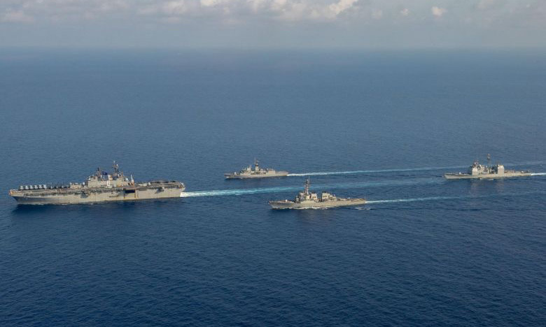 Ngày 18 tháng 4, ở Biển Đông Nhóm tàu chiến Mỹ hoạt động. “Việc Bắc Kinh cáo buộc tài nguyên hàng hải ở hầu hết các vùng miền nam Trung Quốc và chiến dịch đe dọa để kiểm soát chúng là hoàn toàn bất hợp pháp. .