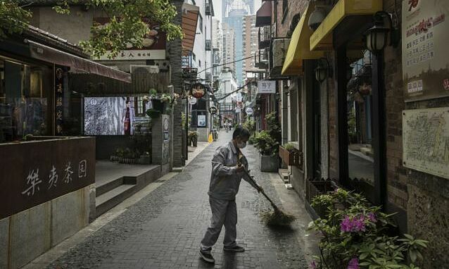 Những người dọn dẹp đường phố bị bỏ rơi ở Trung Quốc. Ảnh: Bloomberg