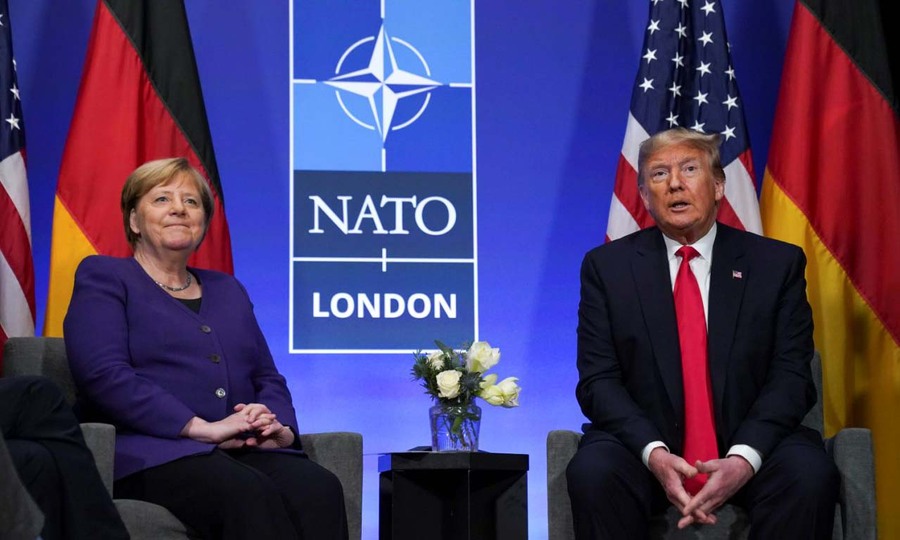 Thủ tướng Đức Angela Merkel (trái) và Tổng thống Hoa Kỳ Donald Trump tại hội nghị thượng đỉnh NATO tại Vương quốc Anh vào tháng 12 năm 2019. Ảnh: Reuters