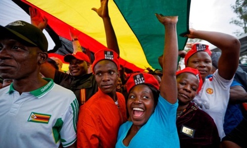 ” Thay đổi là tốt, “Phionah Kusere, nhân viên lễ tân khách sạn 25 tuổi nói.” “Đây là một niềm vui cho con trai tôi.” Zimbabwe sẽ mở ra ánh nắng mới. Anh ấy sẽ có một tương lai mới, “Avril Chimesa, 31 tuổi, nói nhiệt tình. -Chủ tịch của Tổng thống Zimbabwe Robert Mugabe. Ảnh: BBC .