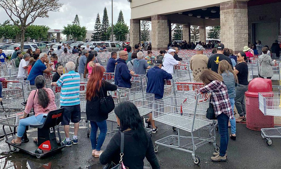 Vào ngày 28 tháng 2, mọi người xếp hàng bên ngoài một siêu thị ở Honolulu, Hoa Kỳ. Ảnh: Reuters.