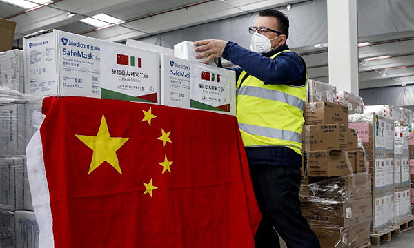 Trung Quốc gửi vật tư y tế đến Ý. Ảnh: “Tạp chí Phố Wall”
