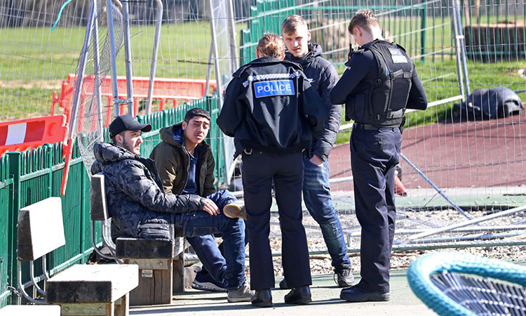 Vào ngày 24 tháng 3, cảnh sát đã giải tán một nhóm thanh niên trên một sân chơi ở Maidstone, Kent. Ảnh: PA .