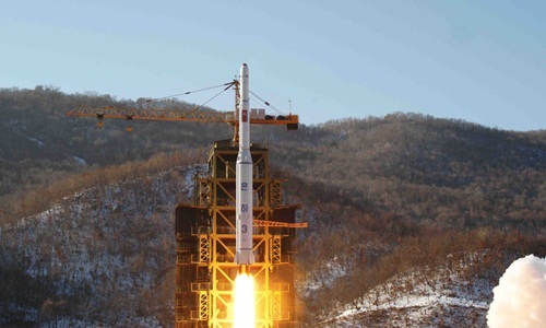 Tên lửa Unha-3 được phóng từ Căn cứ Chứng minh Sohae ở Tongchangli năm 2012. Ảnh: AP .