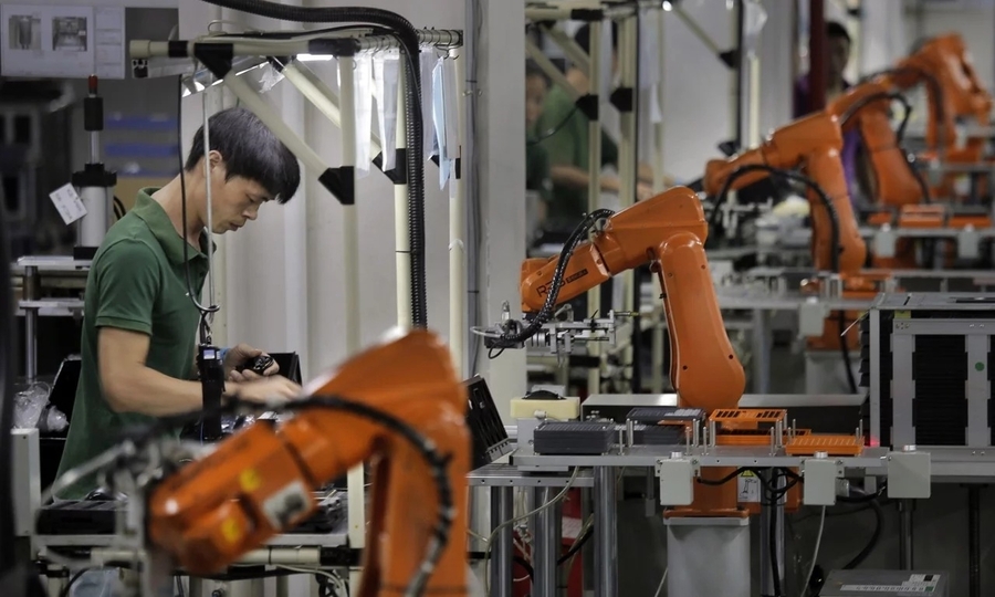 Mọi người làm việc với vũ khí robot trong nhà máy ở Thâm Quyến, Trung Quốc. Vài tháng sau, một số công ty trí tuệ nhân tạo (AI) lớn nhất của Trung Quốc (như SenseTime, Megvii và Hikvision) cũng bị đưa vào danh sách đen. Washington lo ngại rằng chính phủ đang sử dụng công nghệ giám sát của mình để vi phạm nhân quyền của người Duy Ngô Nhĩ ở Tân Cương.