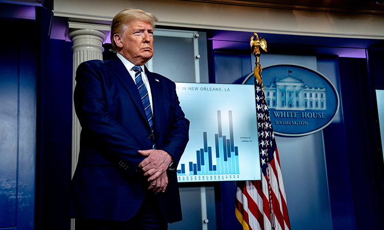 Tổng thống Donald Trump ở số 4 Tại cuộc họp báo của Nhà Trắng tổ chức vào ngày 8/8. Ảnh: Thời báo New York .