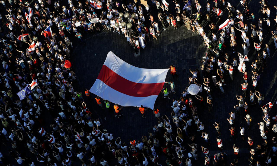Vào ngày 16 tháng 8, lá cờ Belarus đã được treo trong trái tim của những người biểu tình do những người biểu tình tạo ra ở Minsk. Ảnh: Reuters.-Một đám đông người biểu tình tuần hành trên đường phố tới Quảng trường Độc lập ngày 16/8. Trang tin Tut.by mô tả đây là “cuộc duyệt binh lớn nhất trong lịch sử nước Belarus độc lập”. Đụng độ đã nổ ra giữa cảnh sát và người biểu tình, buộc cảnh sát phải bắn đạn thật để kiểm soát tình hình. Hai nhà ngoại giao cho biết họ đã biết về cuộc thảo luận, hai người biểu tình đã thiệt mạng, hàng trăm người bị thương và hàng nghìn người bị bắt. – Các quan chức EU ngày 14/8 quyết định có thêm các biện pháp trừng phạt đối với các quan chức Belarus. Họ nói rằng các cuộc họp của EU về vấn đề này vẫn đang diễn ra.