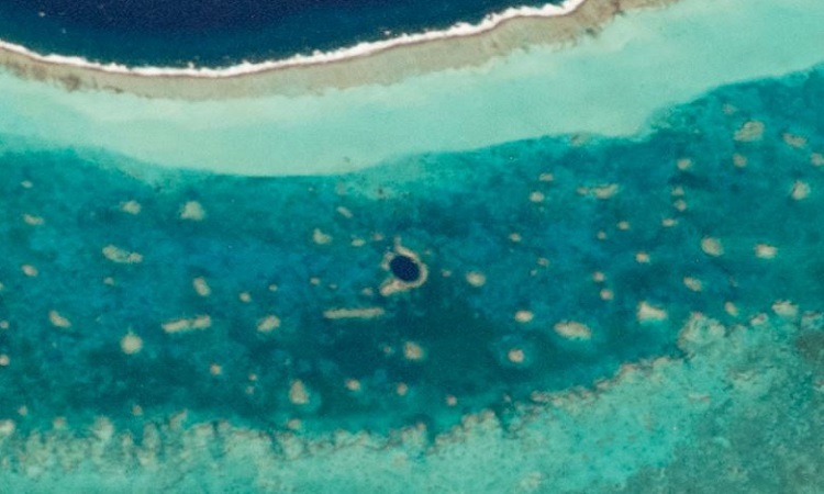 Hố xanh lớn có thể được nhìn thấy từ không gian. Ảnh: National Aeronautics and Space Administration (NASA). Vào tháng 3 năm 2020, khi Trạm Vũ trụ Quốc tế (ISS) đang bay qua Biển Caribê, NASA đã chia sẻ một bức ảnh chụp các thành viên của Great Blue Hole trong Phi đội 62. Trên toàn thế giới, nó rộng khoảng 305 mét và sâu 122 mét. Hố sụt nằm cách bờ biển Belize khoảng 80 km. Vào cuối kỷ băng hà cuối cùng, mực nước biển dâng cao và hang động bị ngập. Theo Đài quan sát Trái đất của Cơ quan Hàng không và Vũ trụ Quốc gia Mỹ (NASA), mặc dù có rất nhiều sinh vật xung quanh Lighthouse Reef nhưng do thiếu ánh sáng và lưu thông oxy kém dưới đáy Big Blue Hole nên hầu như không có sinh vật nào có thể sống sót. . Ở đó