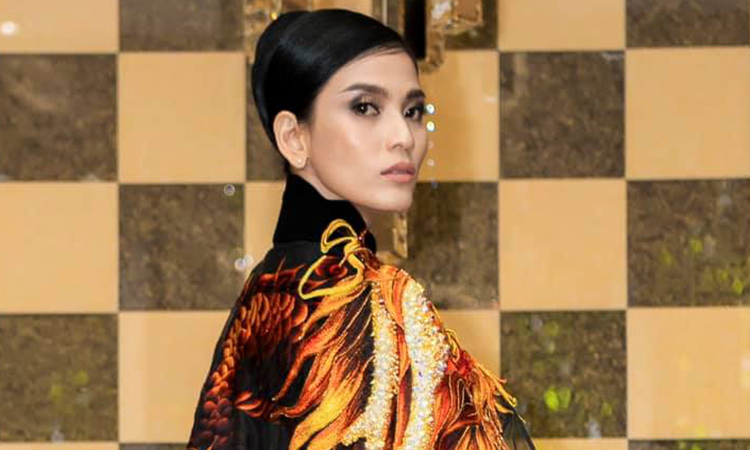 Trong buổi biểu diễn “Ơn giời-Khuyến Quảng Nam Đà Nẵng” chống dịch diễn ra tối 29/8, trang phục nam nữ của nhà thiết kế Đinh Văn Thơ là hai trong số những món đồ được đấu giá. Áo được làm bằng tay bởi sáu thợ thủ công trong hai tháng, với hàng nghìn viên đá quý được khảm trên đó. Áo dài họa tiết rồng được thêu bằng chỉ vàng 24k hai mặt, sử dụng công nghệ 3D cả hai mặt, mang đến cảm giác thịnh vượng và bình an. Năm 2019, người mẫu Trương Thị May diện áo dài tham gia thảm đỏ Liên hoan phim Cannes. Đàm Vĩnh Hưng xuất hiện trong chương trình thời trang Hội An với trang phục áo dài nam. Kết thúc cảnh quay, một doanh nhân đã mua một chiếc áo dài nữ với giá 220 triệu đồng. — Sammo Hung và Trương Thị May của Áo dài rồng vàng được đấu giá. Ảnh: Cung Nhân Vật.