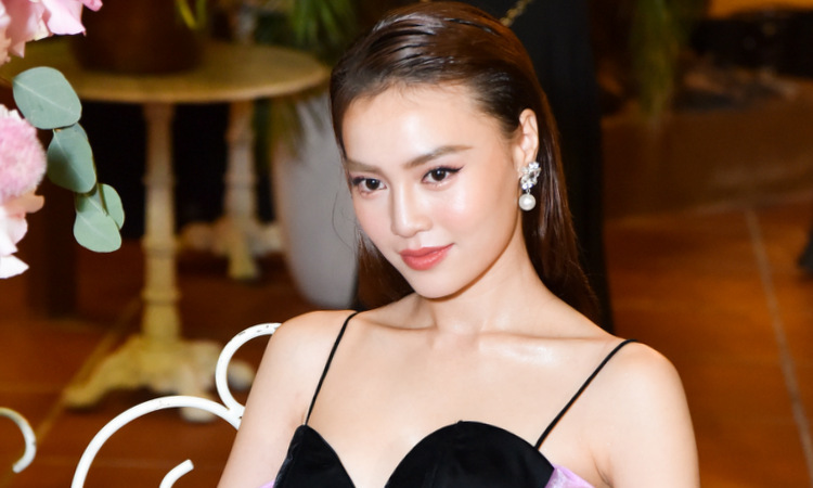 nam diễn viên Katleen Phan Võ mặc một chiếc váy ôm tối giản với một chiếc ly hợp Louis Vuitton.
