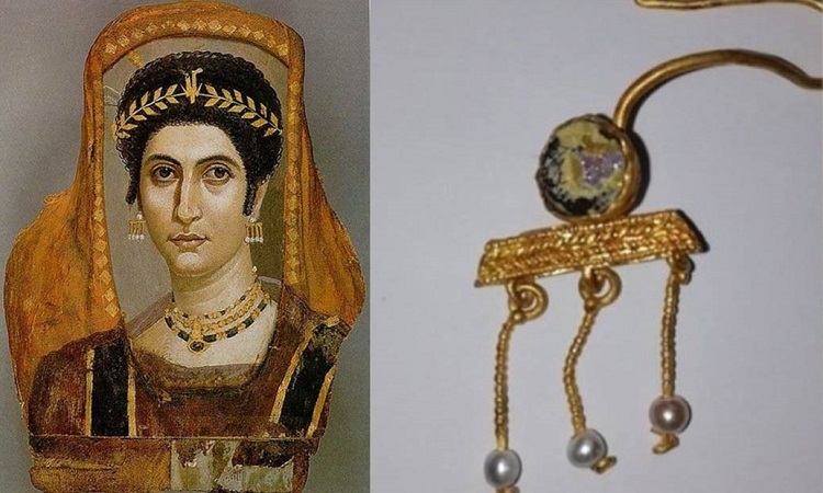 Hoa tai bằng vàng và chân dung xác ướp của Fayum. Ảnh: Wikipedia / Archaeology World.
