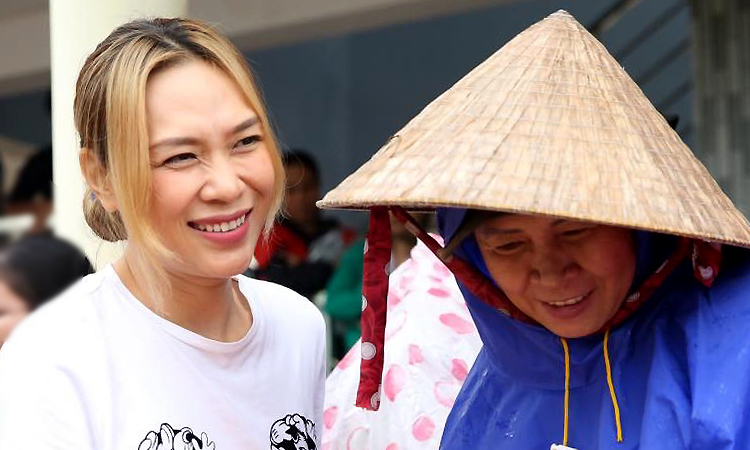 Ca sĩ Mỹ Tâm (đội nón lá) về thị trấn Dailan, quận Dalu vào ngày 16/10. Cô ấy nói: “Trời vẫn còn mưa, và tôi hy vọng mọi thứ sẽ tốt hơn.” Tôi nghe về hoàn cảnh của những người dân sống trong vùng lũ lụt. Chống thiên tai, lũ lụt, mưa lớn làm 55 người chết và 7 người mất tích. 15.000 gia đình bị ngập lụt và đe dọa sạt lở đất, tập trung ở bảy khu vực ở Thừa Thiên Huế và Thăng Bình, tỉnh Quảng Nam. -Cô ca sĩ hỏi thăm sức khỏe và động viên các cụ chú ý. Các ngôi sao đang hướng về miền trung. Ngày 16/10, ca sĩ Thủy Tiên cho biết cô đã kêu gọi mọi người ủng hộ số tiền hơn 30 tỷ đồng. Hàng loạt nghệ sĩ như MC Trấn Thành, vợ chồng đạo diễn Lý Hải-Minh Hà, ca sĩ Hòa Minzy, Mỹ Lệ, Đại Nghĩa … đã quyên góp tiền, nhu yếu phẩm để giúp đỡ người dân Quảng Trị, Huế, Quảng Nam. …