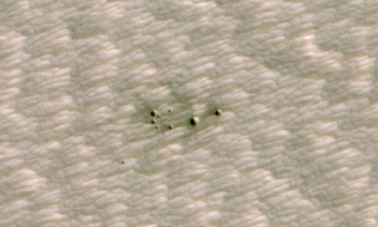 Máy ảnh HiRISE của tàu vũ trụ MRO đã chụp được một loạt miệng núi lửa ở khu vực Noctis Fossae. Ảnh: NASA / JPL-Caltech / Đại học Arizona.