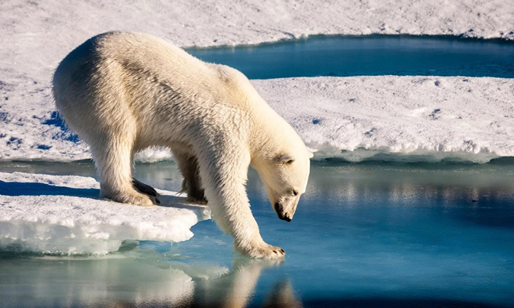 Gấu Bắc Cực kiểm tra độ cứng của băng biển. Ảnh: Agence France-Presse.