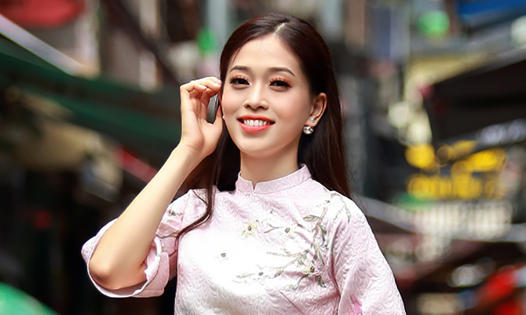 Feng Yuga mặc một chiếc váy lụa và đi dạo trong thành phố cổ Hà Nội trong video.