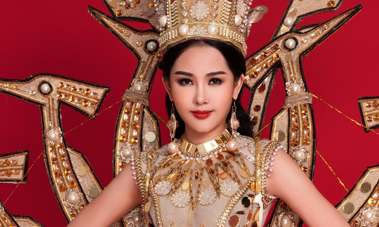 Ngân Anh từng tham gia cuộc thi trang phục dân tộc .