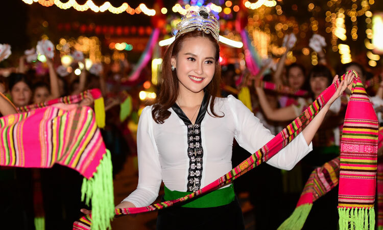 Cô tham gia buổi biểu diễn nổi tiếng của Thái Lan tại sân vận động Nghĩa Lộ (Yên Bái).