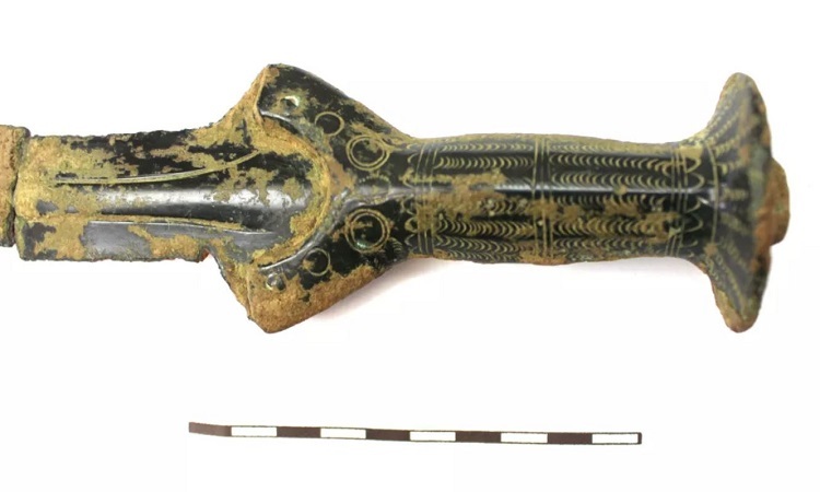 Roman Novák, một nông dân chuyên thu thập nấm, đã tìm thấy một mảnh kim loại giữa những tảng đá trong một khu rừng trên ngọn đồi gần nhà của Jesenicko ở Cộng hòa Séc. Khi anh ta lấy nó ra, anh ta nhận thấy rằng nó là một phần của lưỡi kiếm. Rome tiếp tục khai quật và tìm thấy một chiếc rìu bằng đồng khác. Rome đã báo cáo khám phá cho các nhà khảo cổ học. Một nhóm từ Bảo tàng Silesian ở thị trấn Opava gần đó đang lên kế hoạch khai quật khu vực này. Hình dạng của thanh kiếm cổ đại đặc biệt ấn tượng. Các núm tròn trên tay cầm và tay cầm được trang trí cẩn thận và được chạm khắc bằng tay các hình tròn và hình lưỡi liềm. Ngay cả khi lưỡi dao bị gãy gần cán, lưỡi dao vẫn còn nguyên vẹn. .