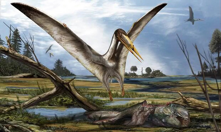 Mô phỏng thằn lằn bay Ornithostoma. Ảnh: Davide Bonadonna .—— Nghiên cứu sinh Roy Smith từ Đại học Portsmouth, Vương quốc Anh, đã kiểm tra các bộ sưu tập hóa thạch vây cá mập tại Bảo tàng Sedgwick và Booth và bất ngờ nhận thấy rằng một phần của xương có chứa các lỗ nhỏ bằng malachite cho phép các dây thần kinh đi qua Và vươn lên bề mặt để phát hiện con mồi. Gai vây cá mập không có đặc điểm này nên các nhà nghiên cứu nhận ra ngay rằng ông đã có một phát hiện thú vị.