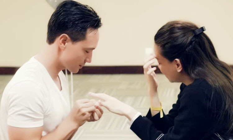Đại diện của cặp đôi cho biết Jinli đã làm theo hướng dẫn của bác sĩ để thực hiện các bài tập của Hà Hồ sau khi sinh. Sau đó, anh đưa cô đến một phòng chuẩn bị riêng biệt có bong bóng và đưa ra lời đề nghị. Hà Hồ bất ngờ bật khóc, đưa tay ra hiệu để bạn trai đeo nhẫn. Nhà thiết kế Công Trí, nhạc sĩ Dương Khắc Linh và nhiều bạn bè khác … đến chúc mừng hạnh phúc lứa đôi.